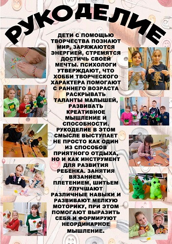 Преимущества: Я занимаюсь макраме. Хочу поблагодарить своего учителя Евгению Владимировну за терпение, труд и заботу. Спасибо за занятия. Я научилась плести браслетики, совушку, слоника и т. д. Кабинет просторный и очень добрый учитель. Спасибо🙏💕